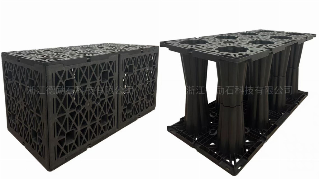 【德励石】雨水收集设施,从雨水收集源头起步,配套管道、储蓄、净化、再利用全套设施,无需额外搭配其他品牌设备,实现雨水处理 “一站式解决”。其中,专利储水模块尺寸满足规范CJ/T542-2020 尺寸为1200*600*600,单组重量需达到23KG以上,模块承压满足正向单层垂直承压力≥500kN/m2 ,侧向单层垂直承压力≥90kN/m2 ,为了保证整体蓄水池的牢固性,防止塌方,单组模块上下连接柱和模块一次注塑成型,具备优异的结构稳定性和抗压性能,可适配多种复杂安装环境,无需担心场地限制问题。